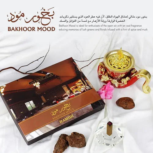 Hamidi Bakhoor Mood is good for fanatics of the open home fragrance in uae, with an hamidi perfumes educing reminiscences of lush green and floral fragrance with a touch of spice and musk.