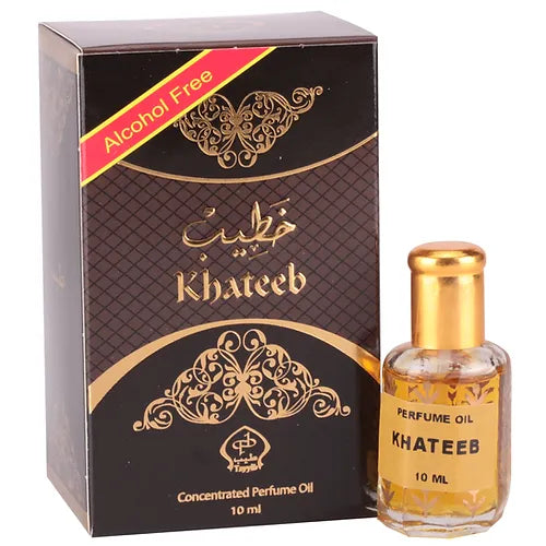 Tayyib Khateeb 10ml Attar is a powerful fragrance that combines deep, woody, and spicy notes for a bold and charismatic scent. Perfect for individuals who prefer strong, lasting fragrances, this alcohol-free perfume oil provides a refined and sophisticated aroma. Ideal for evening wear or formal events, Tayyib Khateeb leaves a lasting impression with its unique blend of natural ingredients. The rich, complex notes create an alluring, captivating fragrance that is sure to turn heads. Add Tayyib Khateeb to your collection for a bold, exotic fragrance that lasts all day.